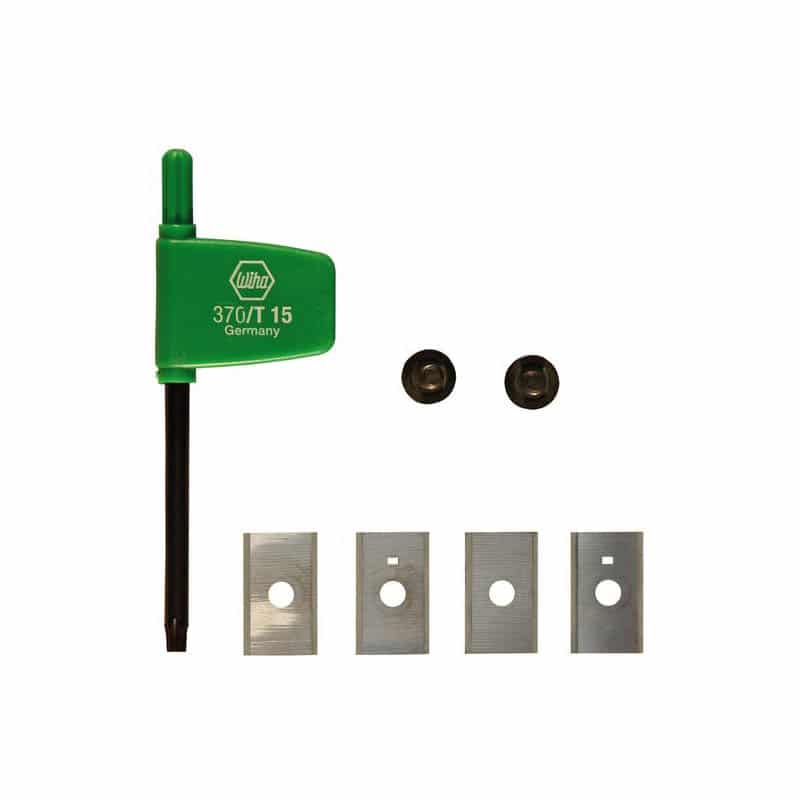 Leveransomfattning 2 x skruv. torxnyckel T15. 4 x vändskär.